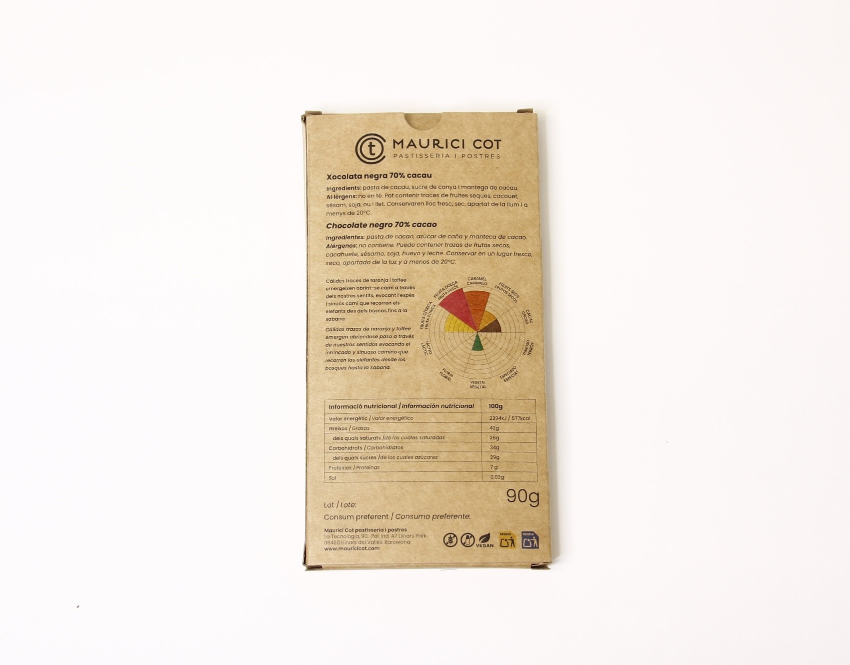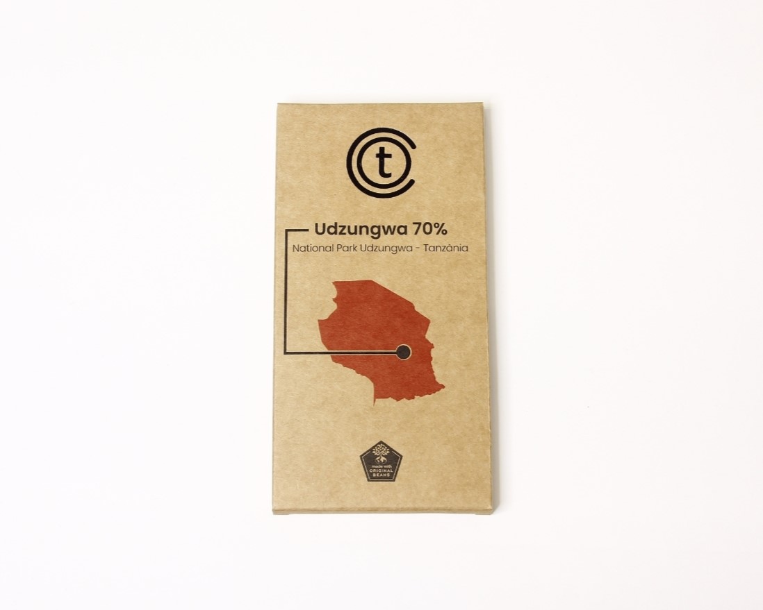 Rajola de xocolata negra 70 % elaborada amb cacau d’Udzungwa.